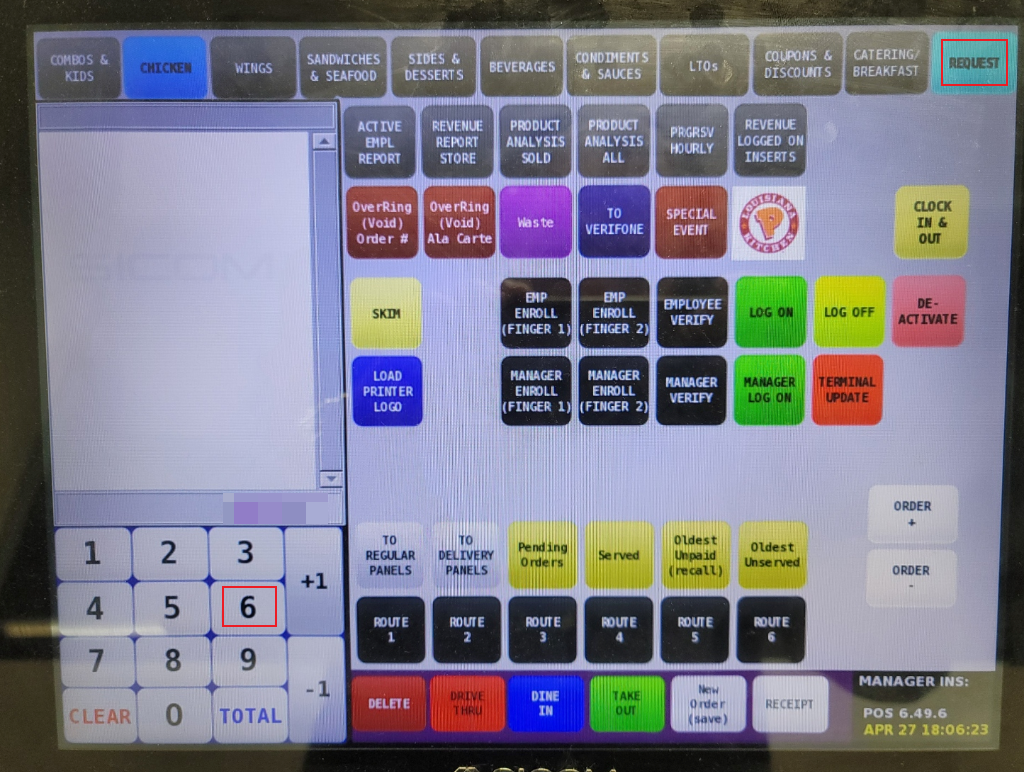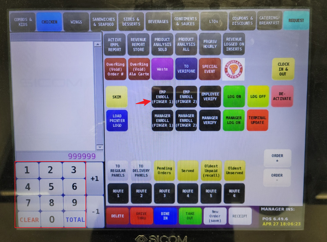 - Hit Request, then select EMP ENROLL (Finger1/Finger2).